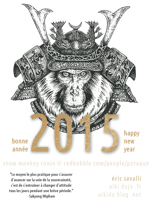 | Tout au de cette nouvelle année qui commence, puissiez-vous bénéficier de bons et fructueux entraînements de pratique, qu’ils soient d’Aikido, de méditation ou tout autre voie ! Bonne mise en pratique de l’Aikido dans votre vie de tous les jours… |